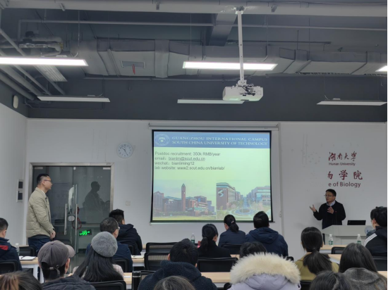 在生物体中,细胞不断地与周围高度动态的细胞外基质(ECM)相互作用并重塑,这一过程使细胞产生各种行为,包括增殖、迁移、分化和凋亡。在报告中,边黎明教授向我们介绍了动态结构水凝胶作为仿生生物材料在三维培养中的优势,相较于可降解动态水凝胶,可逆动态交联水凝胶的动力学特性能更好地模拟细胞在体内的生长环境,实现细胞伸展、分化等重要功能。而具有较大解离速率常数的主客体交联水凝胶,即高度可逆动态性的水凝胶,能够通过细胞力介导的网络重组促进细胞的伸展和机械感应。随后,边教授还向我们介绍了具有高度动态结构的凝聚层这一类新兴的液体生物材料,其独特的能力或许有很大的应用前景。在报告中,边教授用清晰的逻辑和生动又详实的图例向我们展示了近年来相关的研究工作,激发了许多老师和学生们的思考与交流讨论,现场学术氛围浓厚。