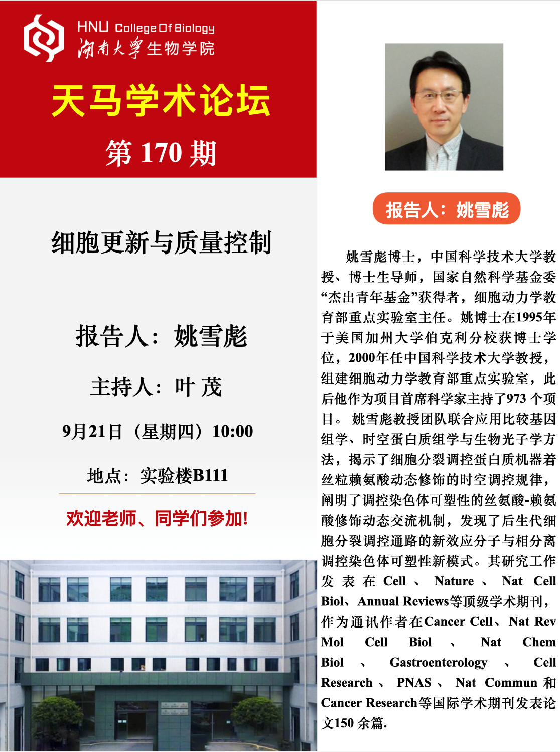 天马学术论坛 第170期-中国科学技术大学 姚雪彪教授