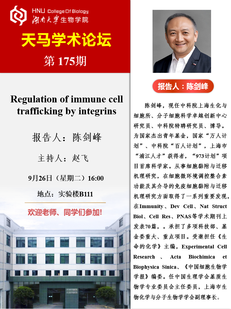 天马学术论坛 第175期-上海生化细胞所 陈剑峰研究员