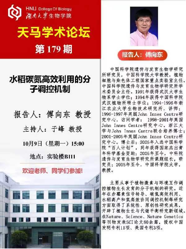 天马学术论坛 第179期-中国科学院遗传与发育生物学研究所 傅向东教授