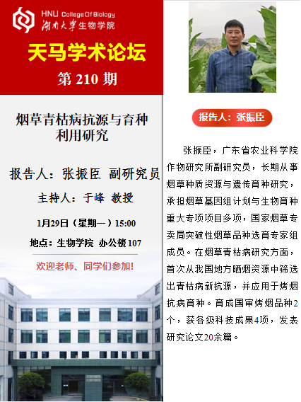 天马学术论坛 第210期 广东省农业科学院作物研究所 副研究员