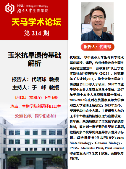 天马学术论坛 第214期 华中农业大学生命科学技术学院教授