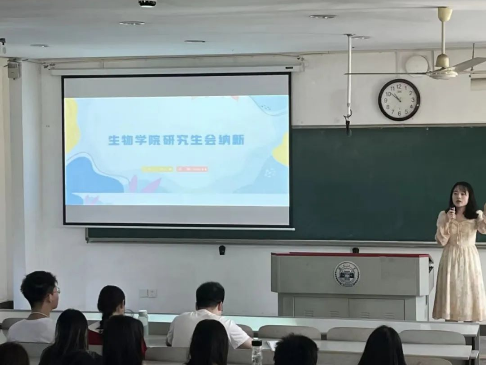 研会是学校党委领导下、团委指导下的主要学生组织,以全心全意为同学服务为宗旨,发挥服务学生的功能,是学校联系广大学生的桥梁和纽带。2022届研会成员罗贞碟介绍了研会各部门的职能特色并分享了自己的经历,鼓励同学们积极报名参加研会,共同学习和进步。