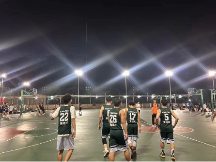 绿树荫浓不遮日,健儿披光赛男篮。