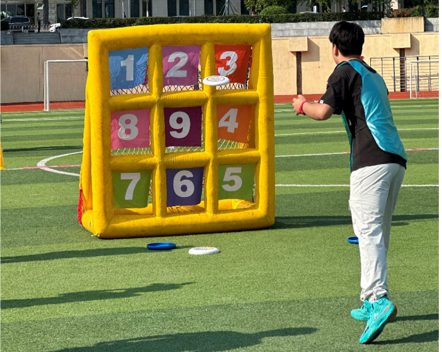 相比之前的项目,”趣味飞盘“项目更考验个人对于投掷飞盘的准度,趣味与挑战并存,部分队员的投射天赋在这个项目中展现的淋漓尽致;
