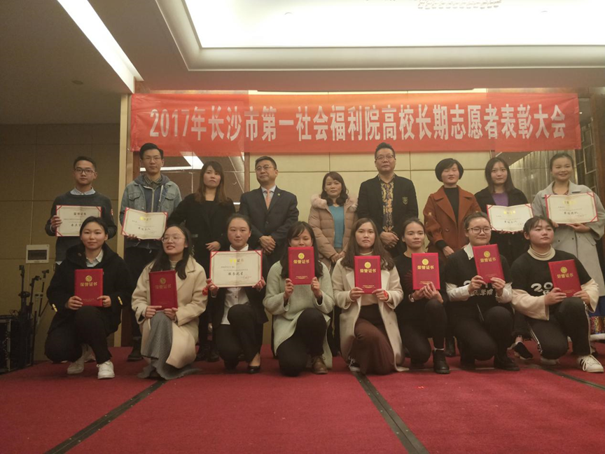 2017年12月11日晚,在部长汤琦龙的带领下,生物院12名同学参加了2017年长沙市第一社会福利院高校志愿者表彰大会。在一年的不懈的努力和付出下,生物院青志协荣获2017年度长沙市第一福利院志愿者团队“最具贡献奖的称号。