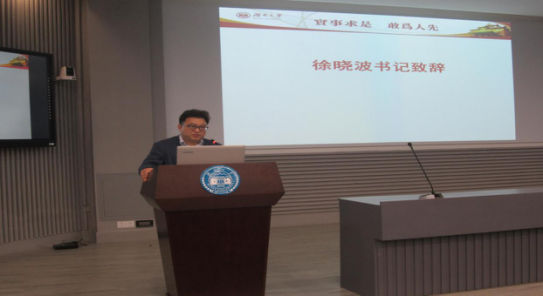 开班仪式伴随着庄严的国歌拉开帷幕。学院党委书记徐晓波上台致辞,提出“三个希望“,第一希望青年学生作为党的后备力量紧密围绕在党的周围,使自我发展步伐始终与党保持一致,第二希望同学们通过学习树立远大理想信念,第三希望各位同学端正入党动机提高政治修养为加入党组织打下坚实基础,最后表达了对各位同学早日加入中国共产党的祝愿,开班仪式在悠悠校歌声中结束。