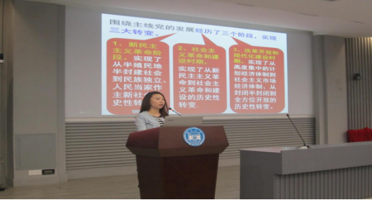 团委书记谢凤汁,她讲授的主题是中国共产党的光辉历程。她的讲述围绕“一条主线“、”两篇文章“和”三大成就“展开,进一步增进了同学们对党的认识并促进同学们明确自己的入党动机,同时又让同学们认识到中国共产党的巨大吸引力和生命力的来源。