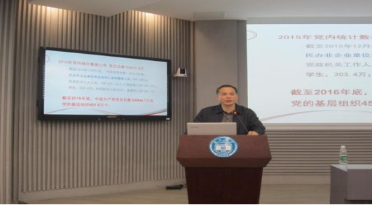 党校常务副校长刘喜东,他讲授的主题是共产党党员的标准和发展程序。他用丰富的数据和图表使同学们对党员人数和党员组成等基本情况有了直观的了解,通过引用斯诺、陈毅的名句和十九大报告中习近平总书记的发言,让同学们对中国共产党人的初心和使命有了初步的认识。在初步了解党的基本情况后,再从全面准确认识党员标准,党员的义务与权利及党员发展程序三个方面向全体入党积极分子进行授课。最后,寄语同学们以青春之我创建青春之国家,过有意义的人生。