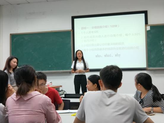 培训从目前学生在就业上常发生的问题为开端,谢老师向大家分析了就业学生普遍存在的不足,并通过2017届毕业生的就业去向统计,结合今年的招聘形势,为大家分析了当前就业形势,引导大家树立正确的就业观念。紧接着,同学们迎来了第一个游戏——自我介绍,小组成员每人可得到60s的介绍时间,之后各小组投票选出本小组印象最深刻的人,在最后向全体成员进行自我介绍。这个游戏既增加了组员之间的相互了解,也是一个临时模拟面试过程,在整个过程期间,同学们都踊跃地向小组成员表现自我,而谢老师也不断地穿梭在每个小组之间,仔细地听着同学们的自我介绍。在60s介绍时间里,谁能更完美地向面试官展示自己,谁获得的机会便越大,因此,谢老师在游戏总结部分要求大家在完整的自我介绍里一定要涉及who、what和why三个方面。