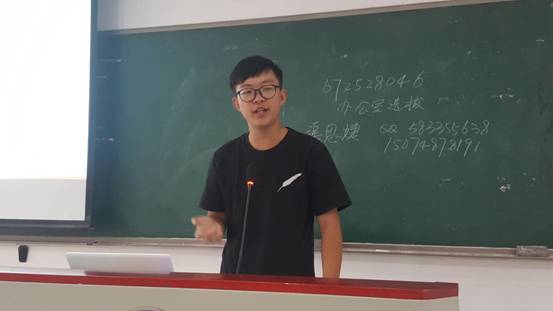 接下来,由生物院的七个部门进行了招新宣讲,他们分别是,办公室,文体部,学习部,生活部,网宣部,青协,创新创业部。各个部门用不同的方式为大家进行了宣讲和介绍,而且极具创意。每个部门都为新生们带来了“彩蛋”,比如第一个出场的办公室,他们将在宣讲会后举行无领导小组讨论并邀请新生参加,表现优异的同学可以优先录取。网宣部开场的宣传视频,更是直截了当的让同学们理解了网宣部的成员分布、职责和平时活动,而他们的“吃可爱多和趣多多长大的部门”这一头衔,极大引起了同学的兴趣。青年志愿者协会的部长这样说:“我们是一个简单的部门,有着一颗纯粹的心,欢迎不简单的你加入。”与他们活泼风格不同的是最年轻的双创部,部长方若名用专业性强,逻辑思维丰富的语言介绍了该部门,给人以深刻的印象。七个部门各显神通,花样百出,更有甚者,生活部放出了海量照片供新生们欣赏,当看见自己的班导时,同学们都欢呼起来……现场掌声不断,惊喜连连,气氛十分活跃。