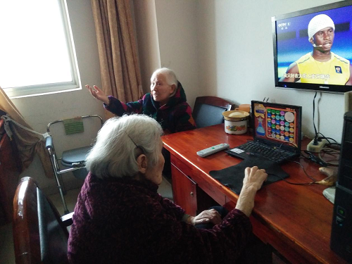 另外一个房间里,一位老奶奶兴致勃勃地用英语与志愿者交流,还一直鼓励志愿者们要认真努力学习,争取出国留学,增长见识,日后成为国家的有用之才。这位老奶奶还自顾自地玩起了消消乐,操作虽然不那么敏捷,但眼力见儿还是很好的呢。她隔壁的老奶奶记性可是一顶一的棒,她记下了清朝所有的皇帝和102个国家对应的首都。老奶奶一位一位地给志愿者们数起清朝历代皇帝,还跟志愿者们做起了小游戏,一位志愿者提问国家,老奶奶和另一位志愿者抢答对应首都。许多问题志愿者还需百度搜索答案,老人却都知道,实在是让志愿者们敬佩。