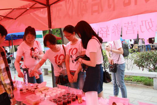 为保证食材新鲜健康,工作人员早早赶到,现场制作养生饮品及养生食物。浓浓的酸奶上点缀着红枣片、黑芝麻、蔓越莓。美味可口的养生酸奶深受同学们的喜爱,活动开始后大约两个小时,酸奶已告罄。除此之外,我们还准备了理气化痰的蜂蜜柚子茶、清热解毒的冰镇绿豆汤、滋阴润燥的龟苓膏等养生饮品,也同样吸引了许多同学前来品尝。他们表示,之前总是把养生与中医中药等方面联系在一起,没想到养生也可以是如此美味,在活动之后,他们必然会更加注重养生,关注日常生活中的养生食物并推荐给父母长辈。