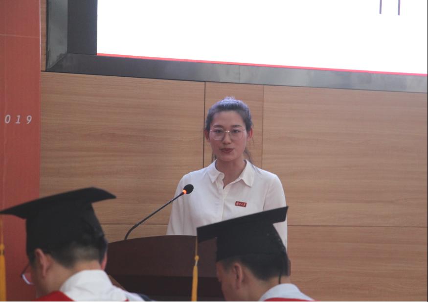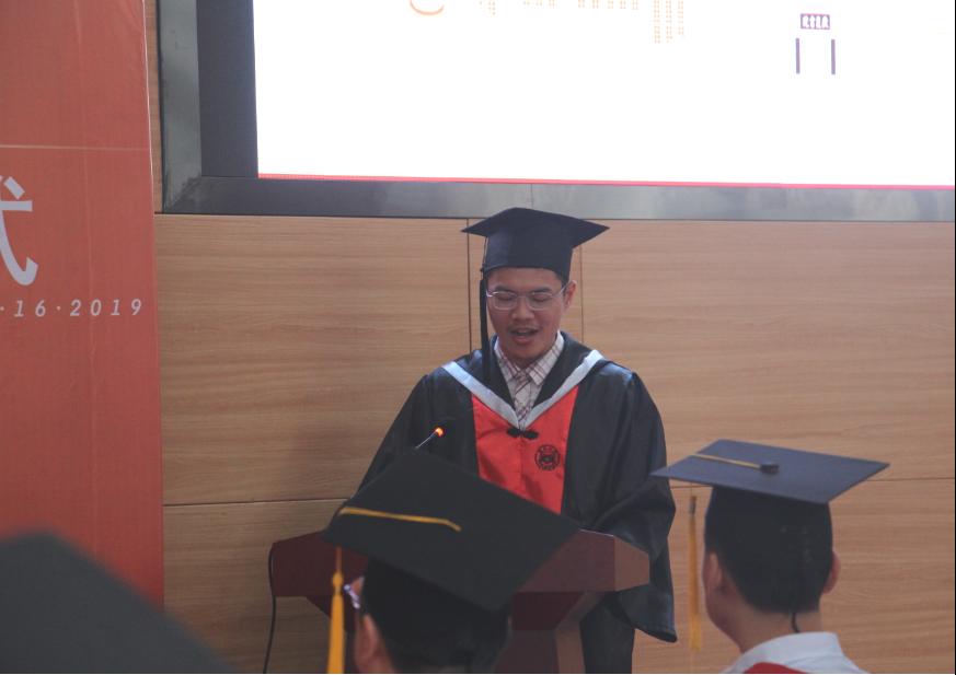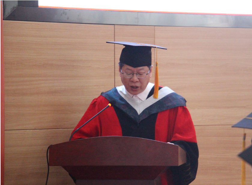 全体教职工向2019届毕业生表示热烈的祝贺,并向所有教导、关心及帮助过学生成长的父母、师长、朋友们表示衷心的感谢。他带领毕业生回顾求学时光中的点点滴滴,赞扬大家学习生涯中所取得的进步,他殷切寄语各位学子:“用科学精神、科学态度对待工作,打造自己的职业辉煌。”并送给大家两个期望:一是勇于面对人生的挫折和失败。不要逃避,不要抱怨,要积极面对、勇于挑战,锻炼出不屈的意志和信念;二是勇于担起时代的责任。当面临时代的需要,国家民族的召唤时,当面临正义和邪恶的较量,历史的关键抉择时,要以一颗勇敢的心,坚定地站在正确的方向,成为推动社会进步的积极力量。