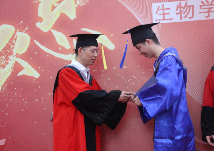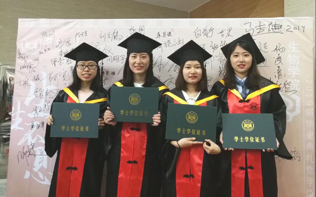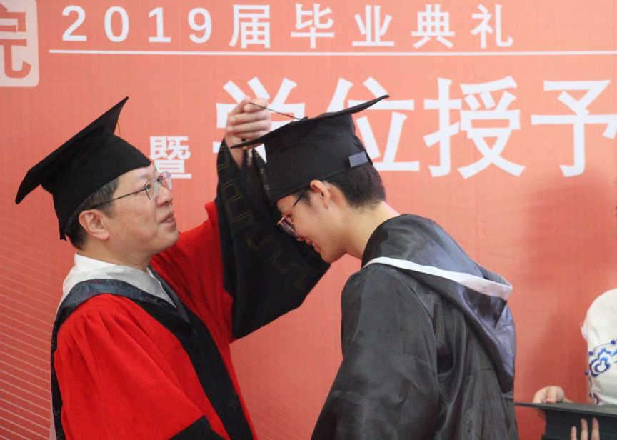毕业生授予学位后,来到“实事求是,敢为人先”的校训前、在庄严的国旗与校旗之间,手持学位证书,留下最有意义的学位纪念照;之后于峰副院长与毕业生们一一握手,并送上殷切的祝福。