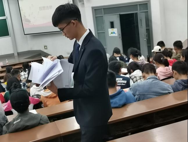 第十一届学生会候选人上台进行竞选演讲,参加大会的各学生代表进行无记名投票。