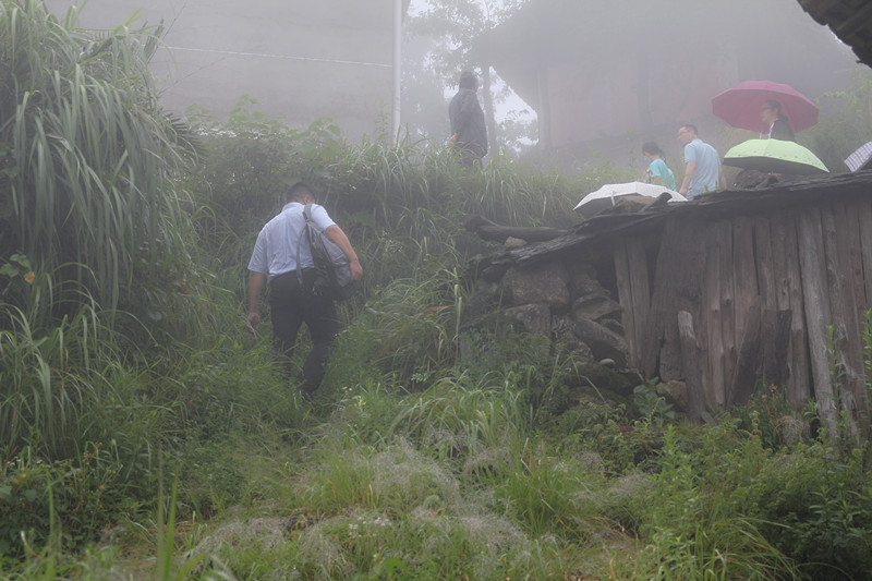 山路崎岖,7个多小时的车程,抵达隆回县白水洞村时已是下午。农户的居所分散在群山之间,行车不便,我们弃车步行,冒着淅淅沥沥的小雨,顺着山路蜿蜒而上。