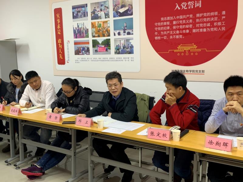 会上,全国“双带头人”党支部书记聂和民结合“不忘实心、牢记使命”主题教育活动,介绍了本季度支部工作进展情况及未来工作计划;讨论了海归青年教师贺建军的入党申请,与会党员全票通过接收其为中共预备党员;何晓晓以“对课程思政的‘明’与‘行’”为题讲党课;邱烨向大会介绍了支部扶贫工作的进展情况。