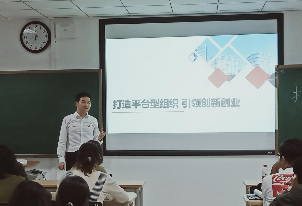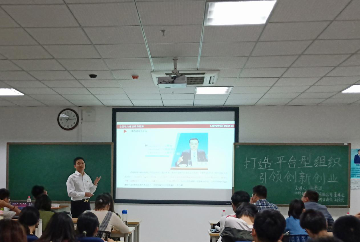 负责的全校通识课程《创新启程》在研究生楼A303教室顺利进行,本次线下活动邀请了西格玛电气股份有限公司董事长、湖南浙江商会副会长——巫奇进老师来为大家带来“打造平台型组织 引领创新创业”的主题演讲。