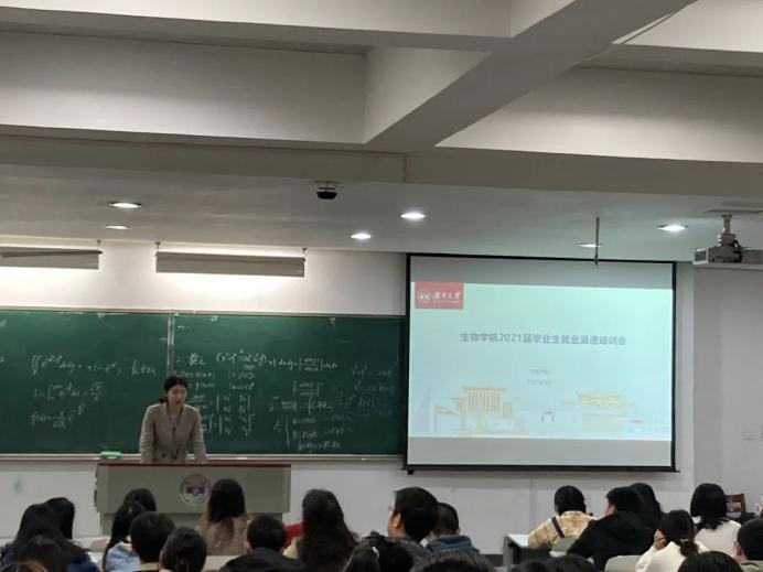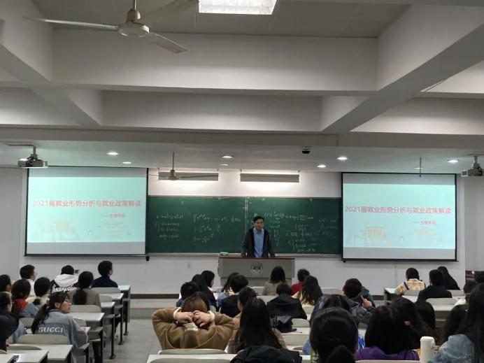 2021届毕业年级就业工作指导会在综合楼举办。学院陈树芸副书记、刘浩老师、冉晓芬老师、杨雨辰老师及2021届全体本科生、研究生参加会议,杨雨辰老师主持会议。