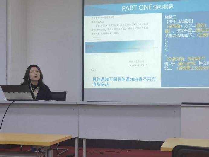 首先,由调研部部长白怡凡介绍了举办活动所需的准备工作及相关内容格式要求,从撰写通知的格式到策划书的内容,包括基本信息要素、活动开展安排、过程保障等几大方面,涵盖活动背景及意义、所需资源、举办及参与者、问题预测与解决方案、经费预算等相关细节。随后她介绍了活动总结的内容及相关要求。最后,她讲解了邀请函、会议记录及经费报销的一些格式及规定。