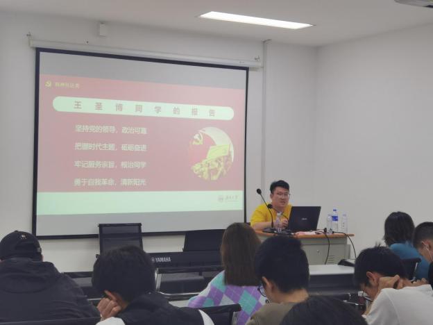 首先是组织部部长张东昊向大家介绍此次活动的精神传达以及学联历史。张东昊部长提到了王圣博同学的报告、孙春兰同志的致辞以及习总书记对广大青年的寄语“青联和学联组织要紧跟时代步伐,把握青年工作特点和规律,深化改革创新,组织动员广大青年和青年学生坚定跟党走、奋进新时代,为党和国家事业发展作出新的更大的贡献”借此指出了本次活动的精神主旨。