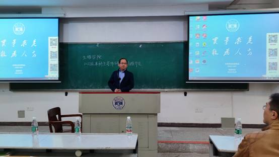 首先,涂海军副院长上台向同学们说明此次推介会的内容与目的,希望同学们能认真倾听每一位导师的自我简介,从中挑选出最适合自己的导师,为明确未来的研究方向打好基础。同时,涂院长还介绍了自己的研究方向,提出“导师制”是一项十分先进的教育制度,希望同学们能把握机会,加入自己感兴趣的实验室。