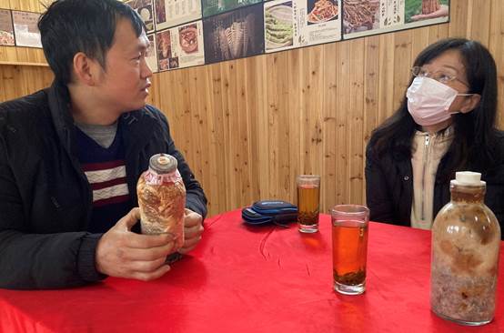 学院教师通过与农户的交流,了解到去年制备的菌丝苗生长状态良好,今年继续帮助农户制备羊肚菌菌种。并且,针对农户反馈的菌包灭绝、无菌操作、培养基制作等问题提供了解答。在着眼当下羊肚菌生产的同时,学院教师就进一步的提升白水洞村菌菇种植的竞争力和品种丰富度也提供了建议措施。