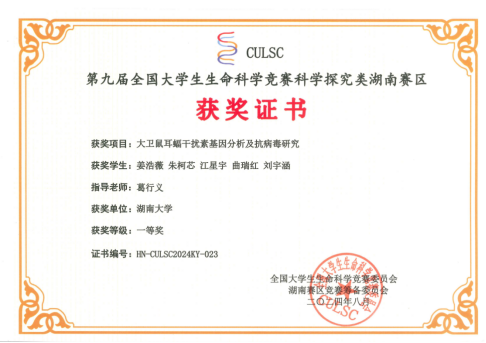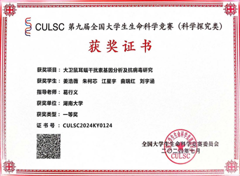 2021级本科生姜浩薇团队(姜浩薇、朱柯芯、江星宇、曲瑞红、刘宇涵)的“大卫鼠耳蝠干扰素基因的分析及抗病毒研究”项目获科学探究类全国一等奖,ebook漫画