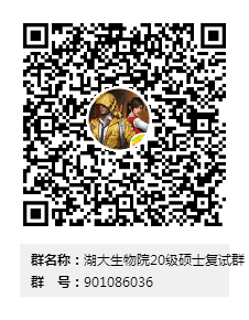 达到复试分数线且有意愿参加本院复试的考生请加入“湖大生物院20级硕士复试群”(简称“复试QQ群”),群号:901086036,相关通知将在群内发布,请务必加入!不参加本院复试的考生勿扰。