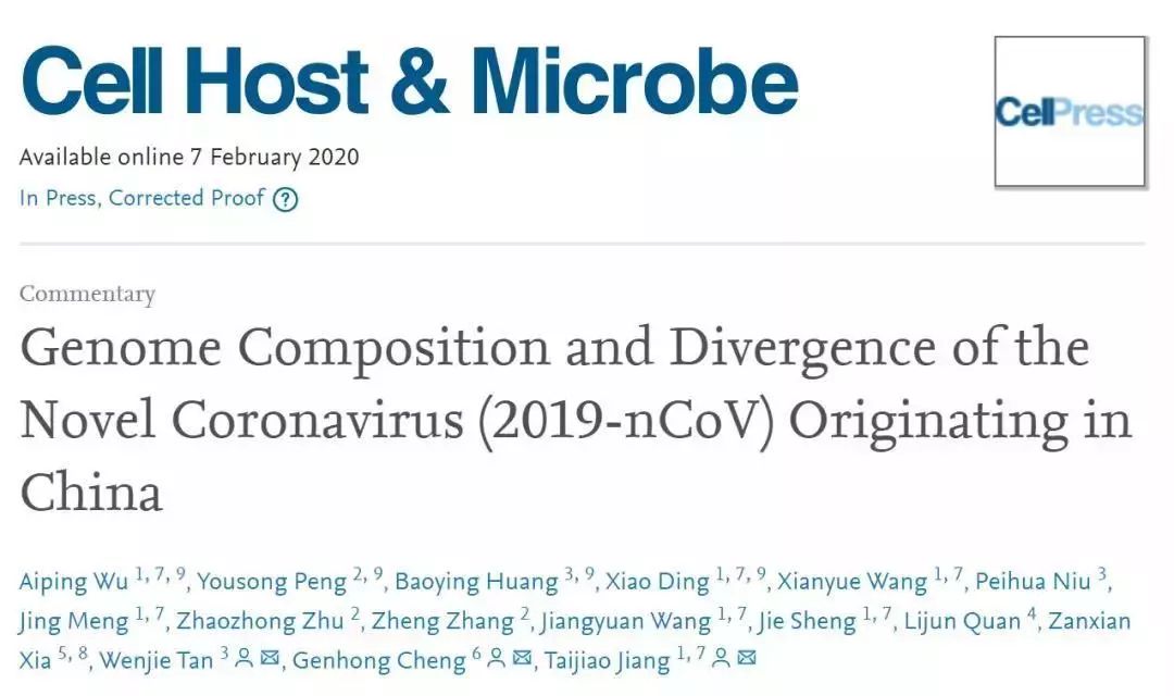 联合中国医学科学院系统医学中心苏州系统医学研究所、中国疾病预防控制中心,在国际权威期刊Cell Host & Microbe在线发表题为“Genome Composition and Divergence of the Novel Coronavirus(2019-nCoV) Originating in China”的研究论文,揭示新型冠状病毒(2019-nCoV)的基因组构成和蛋白序列水平与2003年爆发的SARS病毒之间存在差异。