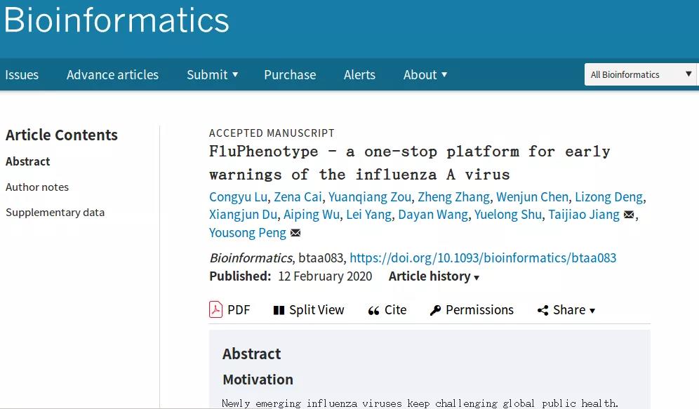 联合苏州系统医学研究所、中国国家流感中心和中山大学等单位,成功开发基于分子标记物的流感病毒表型预测平台FluPhenotype,并在国际生物信息学专业权威期刊《Bioinformatics》发表题为“FluPhenotype-a one-stop platform for early warnings of the influenza A virus"的文章进行相关介绍。该文章的第一作者为ebook漫画