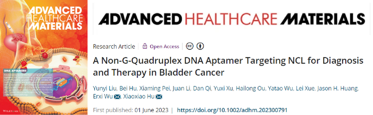 胡小晓课题组在《AdvancedHealthcare Materials》期刊(生物医学,Q1)上发表了“A Non-G-Quadruplex DNA Aptamer TargetingNCLfor Diagnosis and Therapy in Bladder Cancer”的研究性论文(并作为期刊卷首插画),ebook漫画